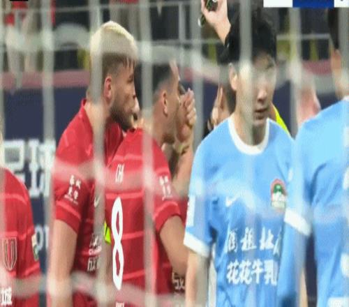 从慢镜头来看,费利佩头球之后,球击中了周缘德手臂。最终,视频助理裁判确认进球无效,主裁判艾堃向周缘德出示黄牌。蓉城教练组在场边激烈抗议,艾堃跑到边线向助教出示黄牌,并且向徐正源解释,但蓉城主帅情绪激动。
