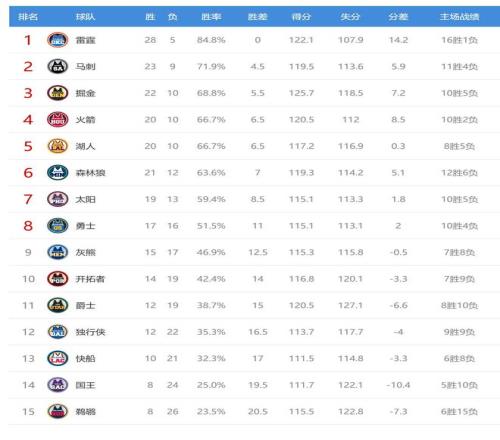 雷霆赢球后28胜5负,取得2连胜,他们已走出了被马刺3连杀的阴影,继续稳居联盟第一。